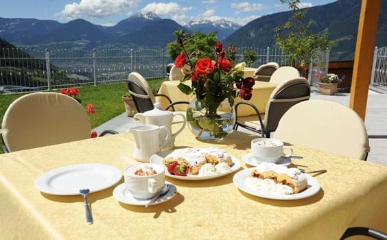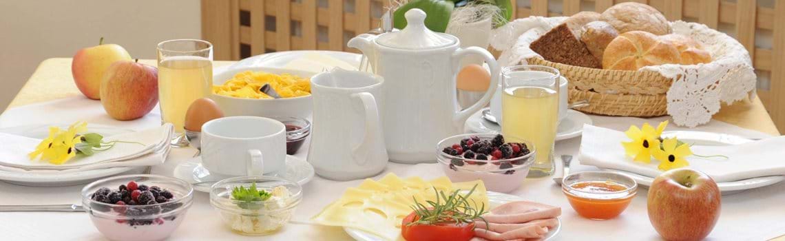 Sie frühstücken in unserem gemütlichen Frühstücksraum oder auf unserer schönen Panoramaterrasse!