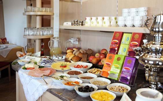 Genießen Sie unser reichhaltiges Frühstücksbüfett mit verschiedenen abwechselnden Produkten.