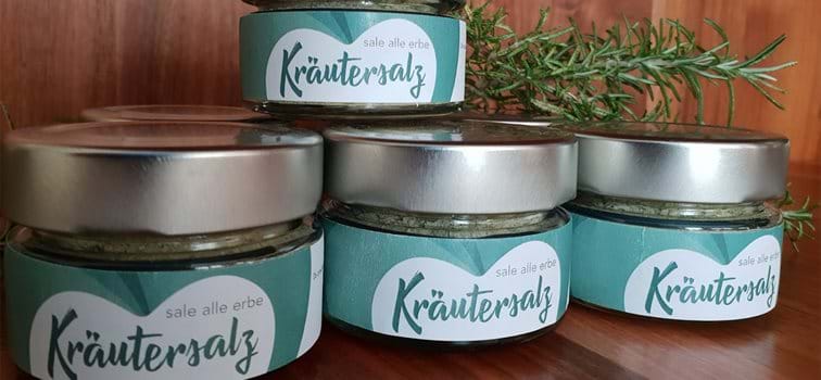 In unserer Produktecke finden Sie besondere Leckereien und kleine Mitbringsel: Kräutersalz mit Kräutern aus dem eigenen Garten, verschiedene Fruchtaufstriche aus hofeigenen Früchten und getrocknete Apfelringe – alles frisch, sowie unser selbstgemachter Sirup Holli-Minze, gesund und saisonal.